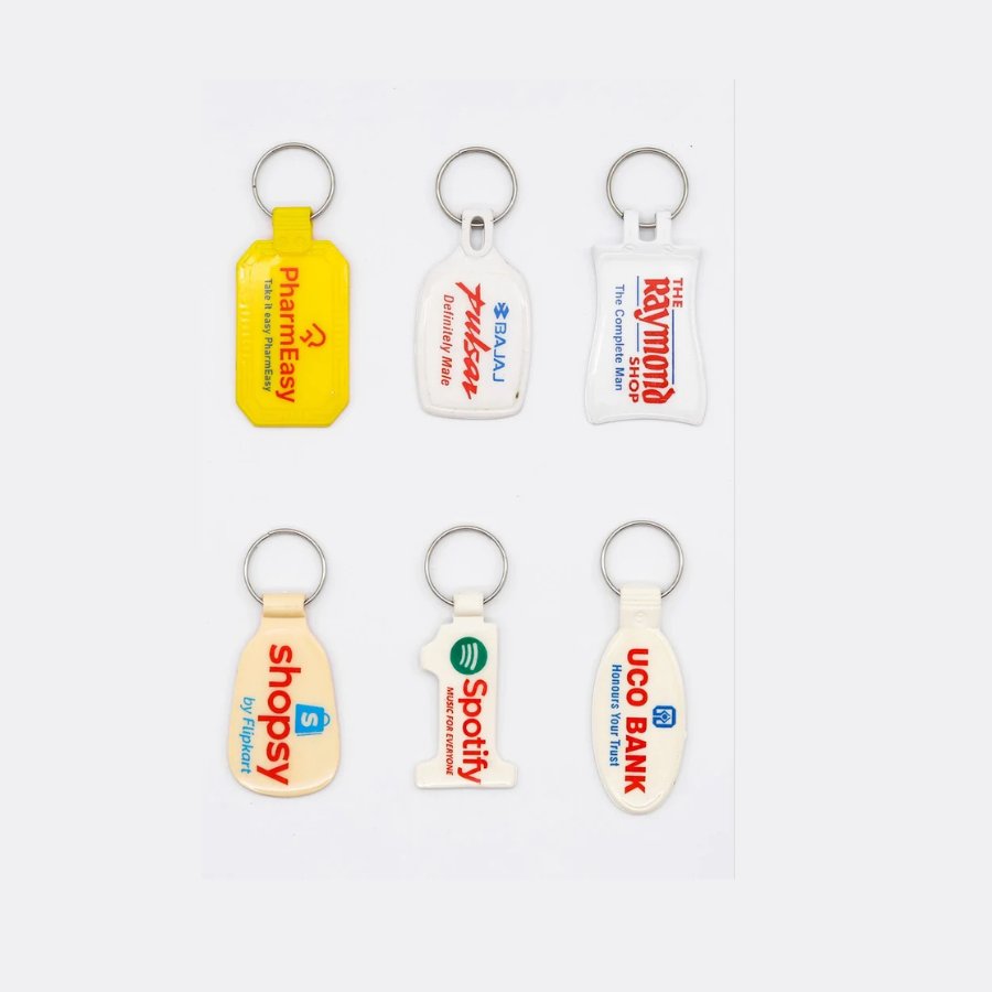 We offer Plastic Printed Keyring in various shapes size and colours. Cheapest way for free distribution to promote your brand or product.