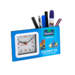 We offer MDF TABLE CLOCK WITH PEN STAND in various shapes size and colours. Cheapest way for free distribution to promote your brand or product